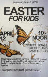 Salem’s Easter Event is April 12th from 10 a.m. to noon and is meant for the whole family to come and enjoy together! Please register now using this link